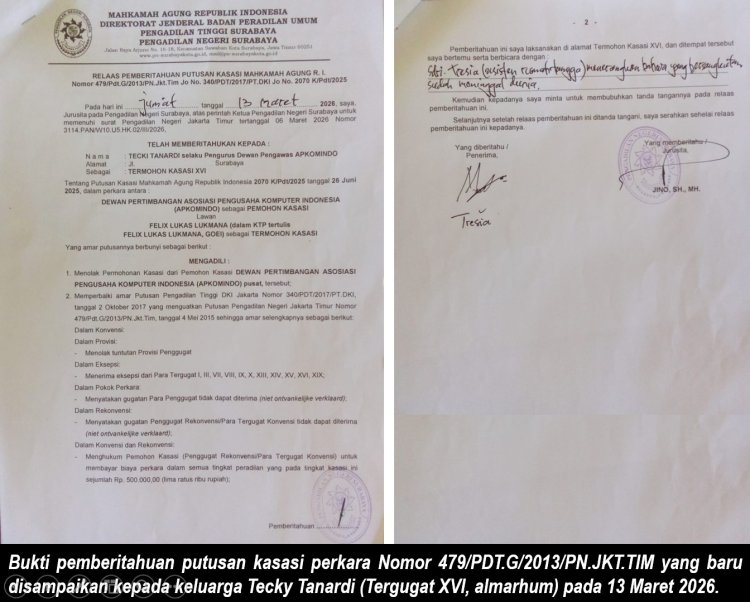 Pemberitahuan putusan kasasi Mahkamah Agung dalam perkara tersebut baru disampaikan kepada keluarga Tecky Tanardi (Tergugat XVI, almarhum) pada 13 Maret 2026. Apabila dihitung sejak awal konflik pada tahun 2011 hingga tahun 2026, sengketa ini telah berlangsung sekitar 15 tahun, menjadikannya salah satu konflik organisasi profesi yang paling panjang dalam sejarah organisasi teknologi informasi di Indonesia.