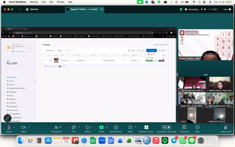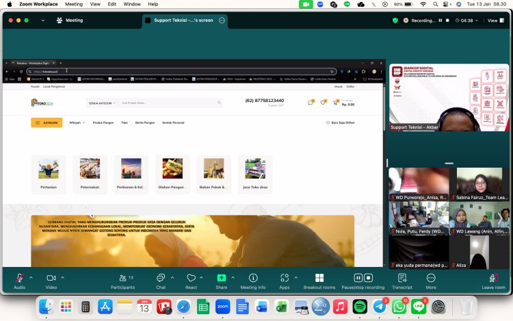 Warkop Digital (WADI) menggelar Pelatihan Tokodesa pada Selasa, 13 Januari 2026, sebagai upaya memperkuat digitalisasi dan pemasaran produk desa. Kegiatan daring ini diikuti oleh perwakilan Warkop Digital dari lima wilayah dan dipandu oleh Pak Akbar selaku mentor. Pelatihan mencakup pengenalan Tokodesa, praktik pembuatan akun, serta pembahasan kendala dan solusi pengelolaan platform guna mendorong produk desa mampu bersaing di era digital.