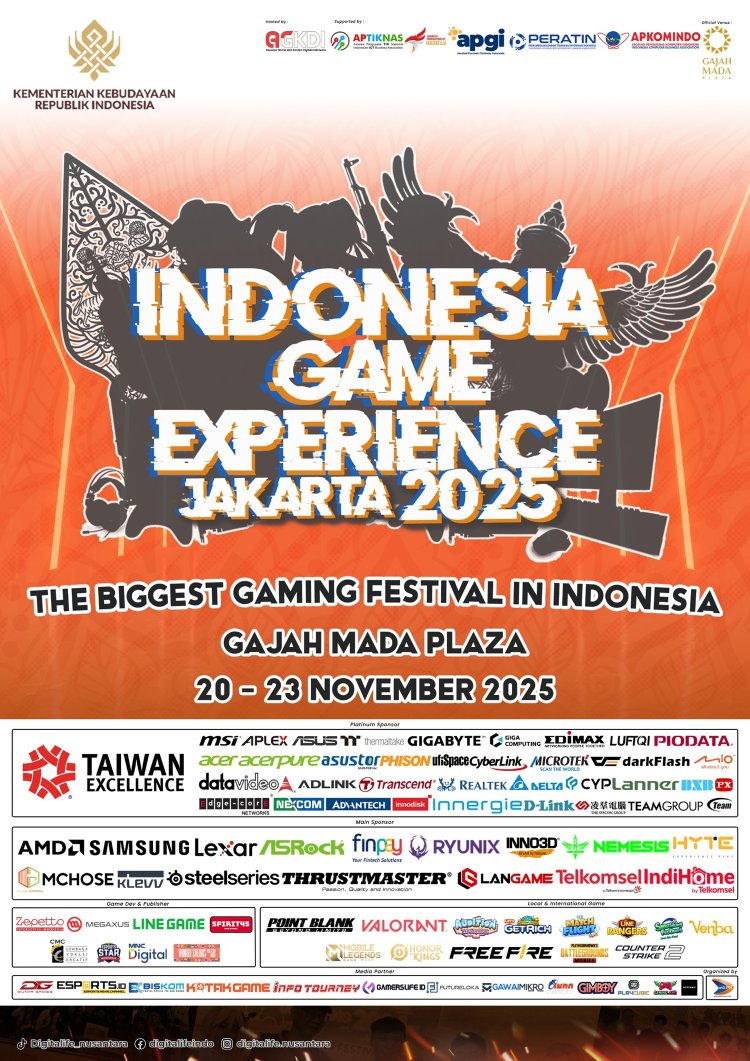 GUETILANG.COM, Jakarta - Menyusul kesuksesan rangkaian roadshow di empat kota sebelumnya, festival game dan teknologi terbesar di Indonesia, Indonesia Game Experience (IGX) 2025, kini bersiap menggelar puncak acara yang lebih monumental di Gajah Mada Plaza, Jakarta pada 20-23 November 2025 mendatang. Pembukaan resmi akan dilaksanakan pada Kamis, 20 November 2025 pukul 10.30 WIB di Atrium Utama Gajah Mada Plaza.