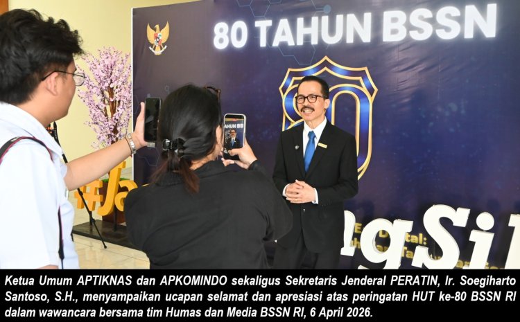 GUETILANG.COM, Jakarta - Ketua Umum APTIKNAS dan APKOMINDO, Ir. Soegiharto Santoso, S.H. (Hoky), menghadiri peringatan Hari Ulang Tahun ke-80 Badan Siber dan Sandi Negara (BSSN) yang digelar pada 6 April 2026 di Kantor BSSN, Depok, Jawa Barat. Momentum ini mengusung tema “Kedaulatan Siber Memperkuat Ketahanan Nasional”, yang menegaskan pentingnya keamanan siber sebagai fondasi strategis dalam menjaga stabilitas dan kedaulatan bangsa di era digital.