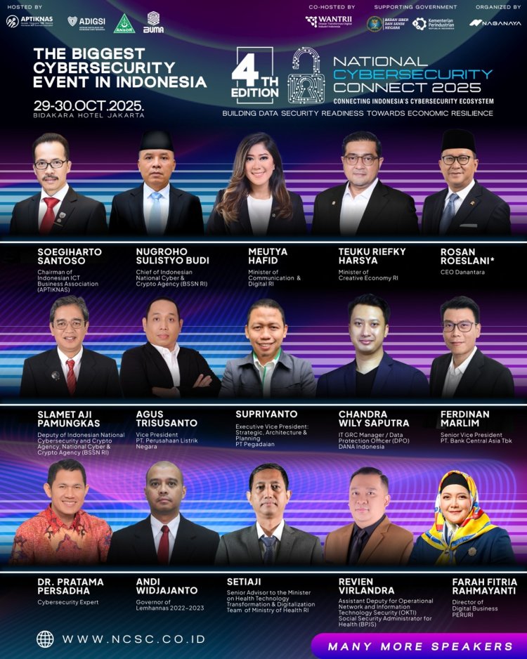 GUETILANG.COM, Jakarta - Langkah strategis Indonesia dalam memperkuat fondasi ekonomi digital yang berdaulat dan tangguh kembali diukir melalui pembukaan National Cybersecurity Connect (NCC) 2025 di Hotel Bidakara, Jakarta, Kamis (29/10). Acara tahunan dibidang Cybersecurity terbesar yang mengusung tema "Building Data Security Readiness Towards Economic Resilience" ini menegaskan bahwa kedaulatan di ruang digital merupakan prasyarat mutlak untuk mencapai ketahanan ekonomi nasional yang berkelanjutan.