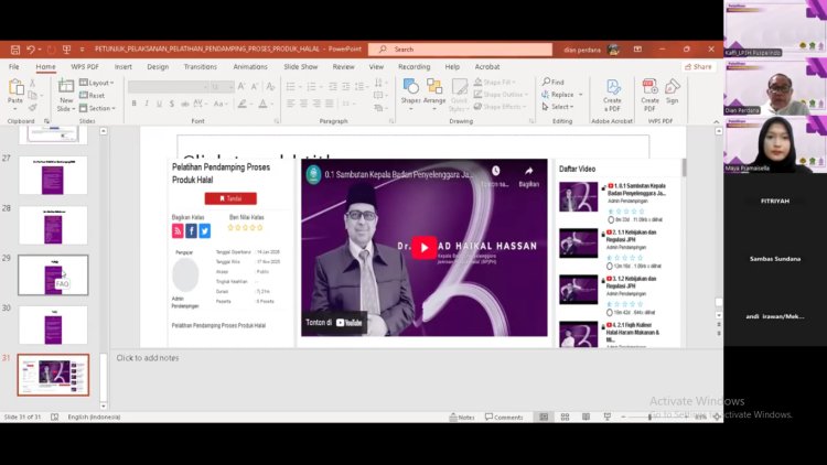 Pelatihan berlanjut di keesokan harinya, Kamis (29/1/2026), peserta mengikuti sesi lanjutan yang membahas teknis pendampingan Proses Produk Halal secara lebih mendalam. Melalui pendekatan yang komunikatif, para peserta diajak melihat sertifikasi halal bukan sebagai hambatan, melainkan peluang untuk meningkatkan kepercayaan konsumen dan daya saing produk di pasar.