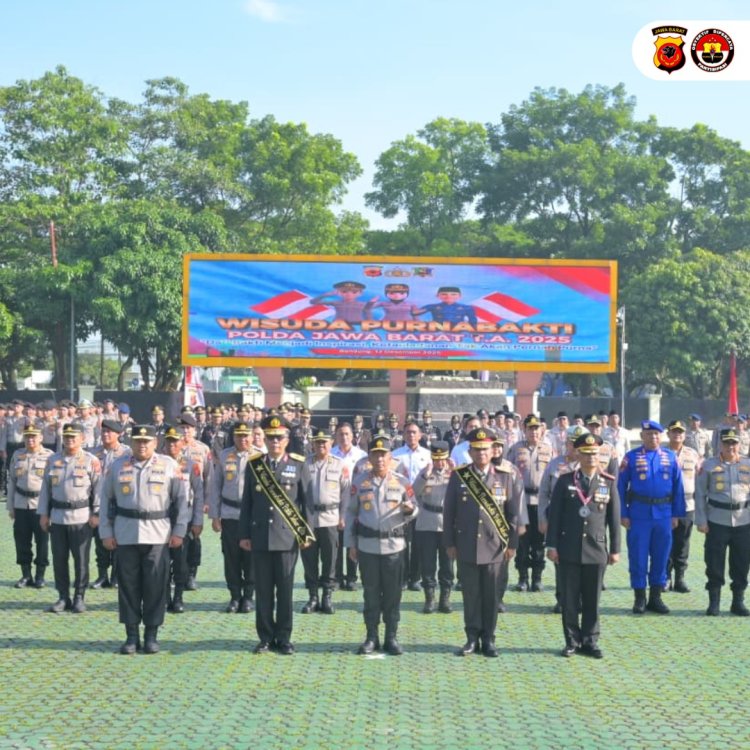 Guetilang.com, Kota Bandung - Polda Jawa Barat menggelar Upacara Wisuda Purnabakti bagi PNPP Satker Polda Jabar Tahun Anggaran 2025 pada Jumat, 12 Desember 2025, di Lapangan Upacara Polda Jabar. Acara yang berlangsung sejak pukul 07.00 WIB ini menjadi momen penuh haru dan kebanggaan bagi keluarga besar Polda Jabar. Sebanyak 111 personel terbaik terdiri dari Perwira Tinggi, Perwira Menengah, Perwira Pertama, Bintara, dan PNS Polri resmi dilepas setelah puluhan tahun mengabdikan diri untuk keamanan dan ketertiban masyarakat Jawa Barat.