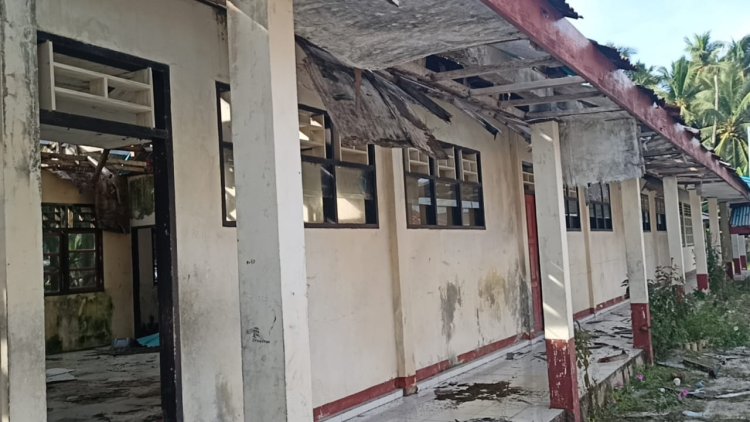 Miangas, Guetilang.com – SD Negeri Miangas Rusak Parah Lebih dari Setahun, Murid Belajar di Kantor Camat Miangas. Anggaran Dibayar lewat APBD–Tinggal Tunggu Tender. Sekolah Dasar Negeri Miangas mengalami kerusakan parah pada atap dan struktur bangunannya, sehingga lebih dari satu tahun terakhir ini, para siswa terpaksa harus mengikuti kegiatan belajar mengajar di kantor Kecamatan Khusus Miangas sebagai ruang darurat.