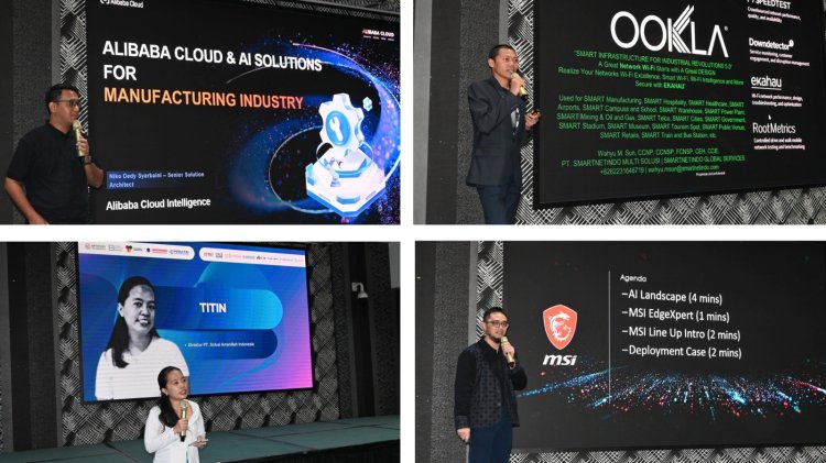 Peserta diajak menyaksikan langsung implementasi solusi nyata dari mitra teknologi global. Wahyu M. Sun, CCNSP, FCNSP, CEH. selaku CEO & Founder Smartnetindo, memaparkan berbagai solusi infrastruktur digital end-to-end yang mendukung percepatan transformasi digital. Selanjutnya, Yoppy Sundawa, Business Development Manager MSI, turut menyajikan solusi perangkat keras andal untuk sektor industri. Sementara itu, Niko Dedy Syarbaini, Senior Solution Architect Alibaba Cloud Intelligence, memaparkan solusi Alibaba Cloud dan kecerdasan buatan (AI) yang dirancang khusus untuk industri manufaktur.