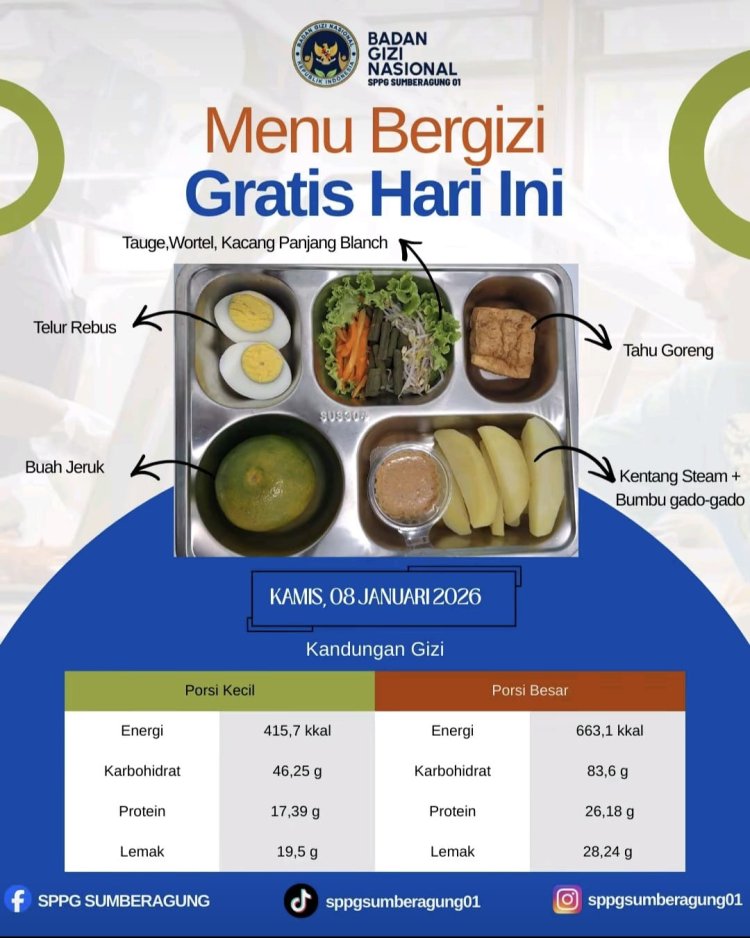 SPPG Sumberagung 01 Ngantang menghadirkan menu makan bergizi gratis berbahan lokal untuk anak sekolah. Program ini mendukung pencegahan stunting dan peningkatan kesehatan masyarakat.