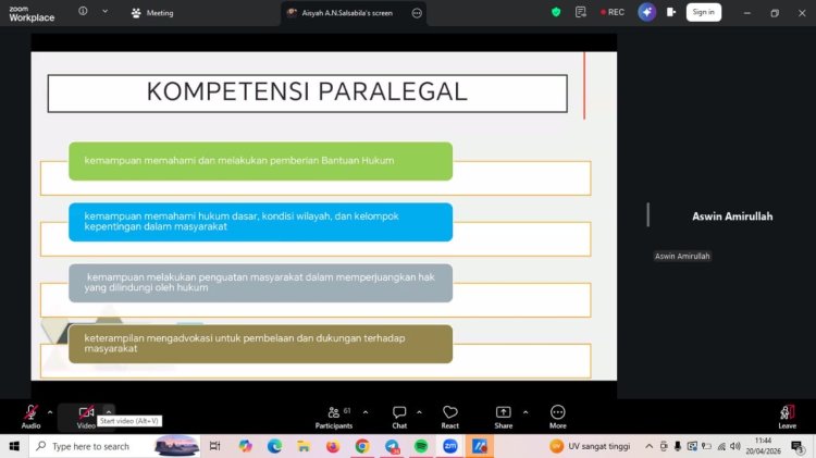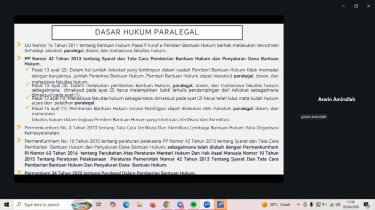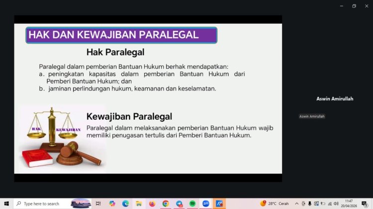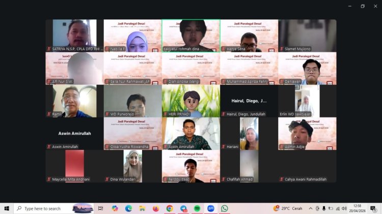Kegiatan webinar bertajuk “Warkop Digital Jadi Garda Hukum: Saatnya Kamu Ambil Peran sebagai Paralegal Desa” yang diselenggarakan oleh Warkop Digital bekerja sama dengan Rumah Hukum Indonesia pada Senin, 20 April 2026, berlangsung dengan lancar dan mendapat antusiasme tinggi dari peserta. Kegiatan ini dilaksanakan secara daring dan diikuti oleh 70 peserta aktif, dengan suasana diskusi yang interaktif dan edukatif.