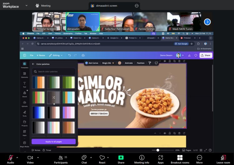 - Warna Otomatis: Peserta juga diajarkan penggunaan AI untuk mengubah skema warna desain yang telah dibuat secara instan.